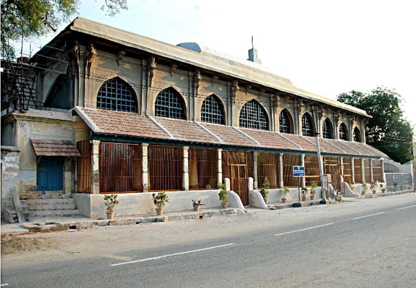 The residential chamber is an octagonal structure supported by 8 arches. The edge of the arches has stucco floral designs. Ornamental stucco brackets with floral designs are also noticed. The other structure has vaulted roof and is supported with ten massive pillars and arches. The coat of arms of Queen Victoria has also been painted here.