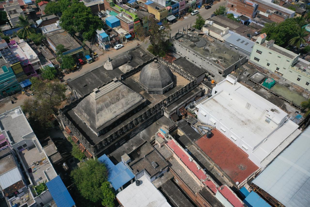 Srivillputtur is 77 kms west of Madurai and around 184 kms from Trichy. Srivillputtur derived its name from sri (holy), Villi (bow man), puthu (new) and ur(palace) meaning holy bow man’s new place. This the birth place of Andal, a well-known vaishnavaite saint. The Nayaks of Madurai ruled this Kingdom from 1545 until the 1740s and Thirumalai Nayak (1623-1659) was one of their greatest kings notable for various buildings in and around Madurai. The palace was built by Tirumalai Nayaka of Madurai (1623-59). Thirumalai Nayak Palace is a 17th-century palace erected in 1636 CE by King Tirumala Nayaka, a king of Madurai’s Nayaka dynasty who ruled Madurai from 1623 to 1659, in the city of Madurai, India. The palace was built by Tirumalai Nayaka of Madurai (1623-59). It served as his place of residence during his stay at Srivilliputtur when he came to pay his obeisance to the presiding deity. The structure is a moderate when compared to his grand palace at Madurai. There are two portions in this palace; one might be his residence and other the audience hall.
