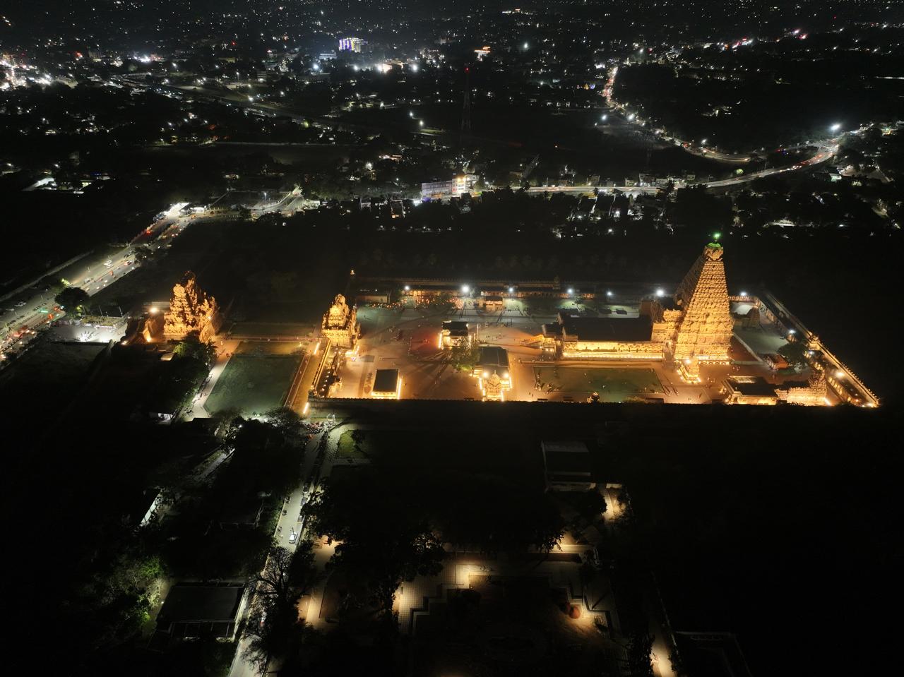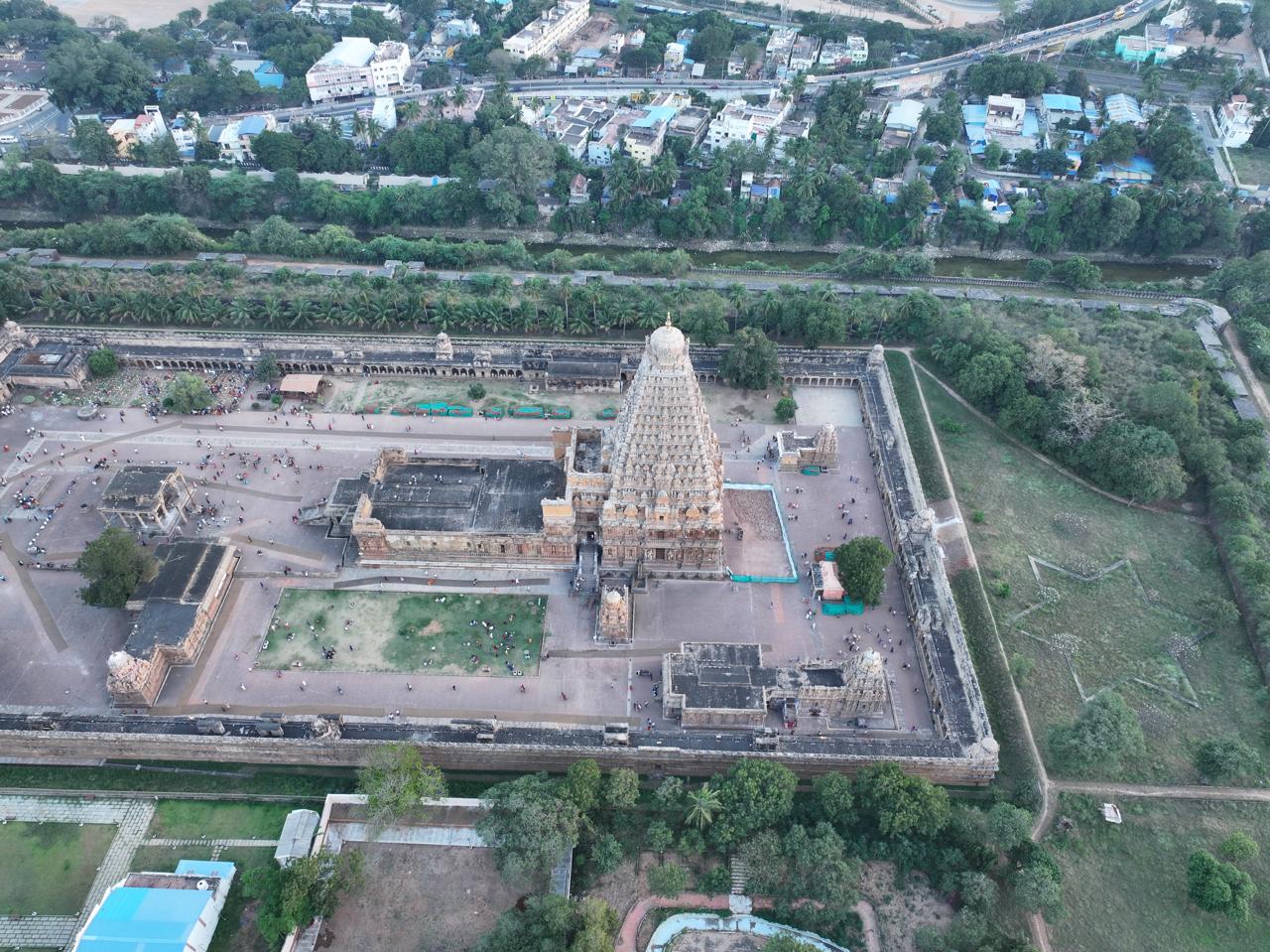 The celebrated Shiva temple at Thanjavur, appropriately called Brihadisvara and Daksinameru, is the grandest creation of the Chola emperor Rajaraja (AD 985-1012). It was inaugurated by the king himself in his 19th regnal year (AD 1009-10) and named it after himself as Rajesvara Peruvudaiyar. Architecturally, it is the most ambitious structural temple built of granite. It has been regarded as a ‘landmark in the evolution of building art in south India’ and its vimana as a ‘touchstone of Indian architecture as a whole’. The temple is within a spacious inner prakara of 240.9 m long (east-west) and 122 m broad (north-south), with a gopura at the east and three other ordinary torana entrances one at each lateral sides and the third at rear. The prakara is surrounded by a double-storeyed malika with parivaralayas. The temple with its massive proportions and simplicity of design provided inspiration for future designs in constructions not only in south India but also in south-east Asia.